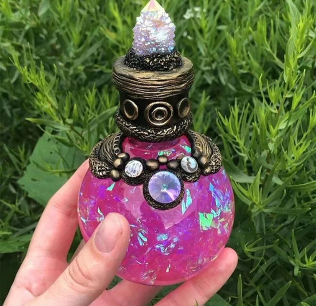 Botellas decorativas en resina para dar un toque místico a tu altar o espacio especial.✨