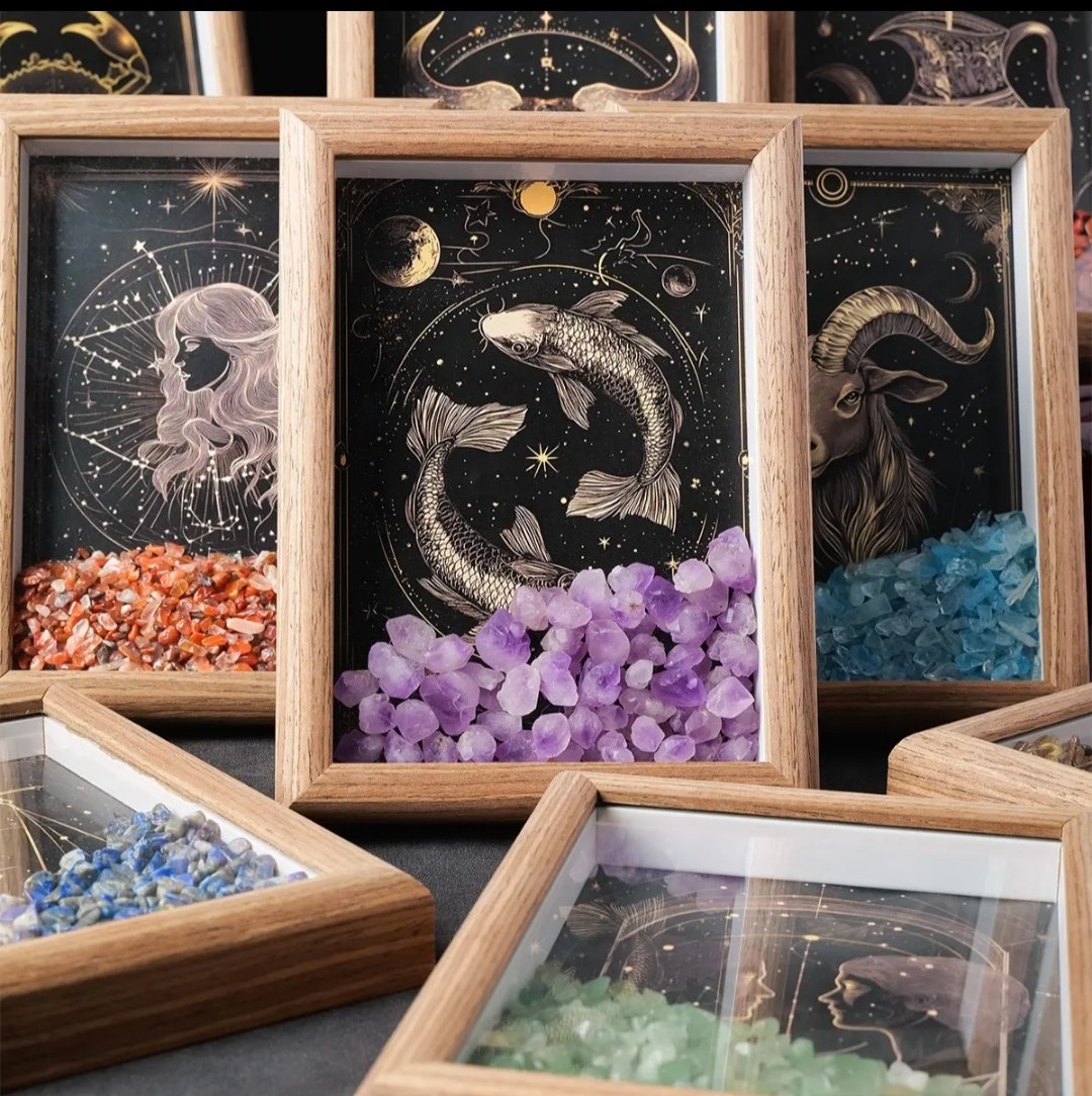 🌠 Decorá con la energía de tu signo. Cuadros zodiacales con piedras que simbolizan tu esencia.