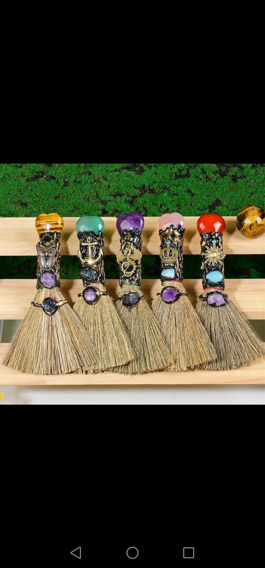 ✨ Escobas mágicas con piedras y símbolos de protección. Un amuleto único para atraer energía positiva y buena fortuna. 🧹💫