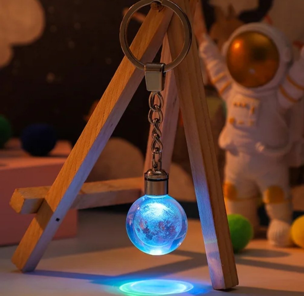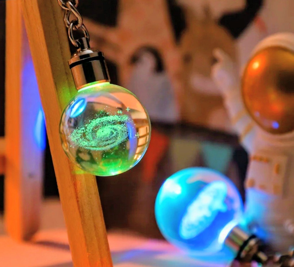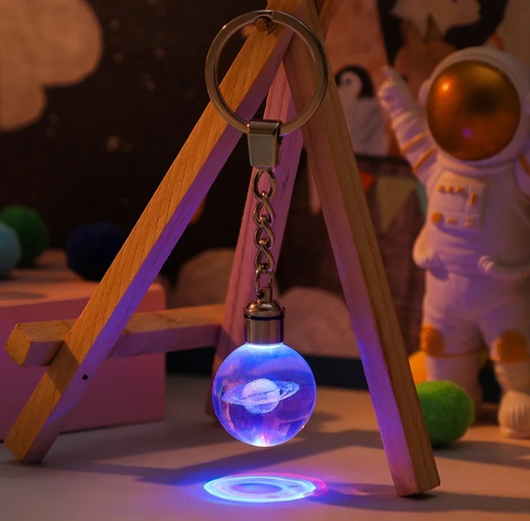 Llavero con bola de cristal luminosa ✨ que cambia de color. Variantes: Saturno | Luna | Nebulosa.
