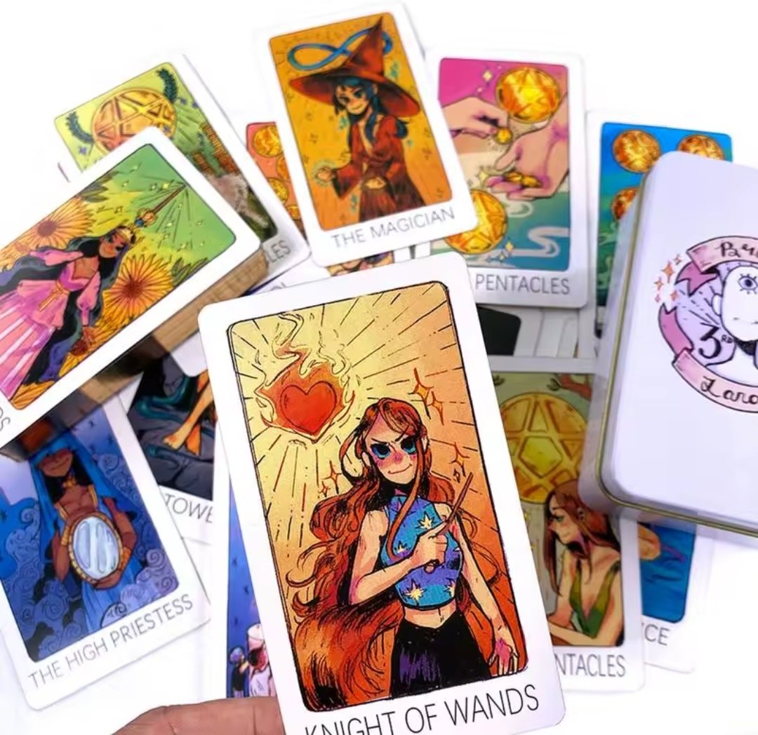 Mazo de tarot premium 🎴✨ Bordes y caja metalizada, con libro incluido📖